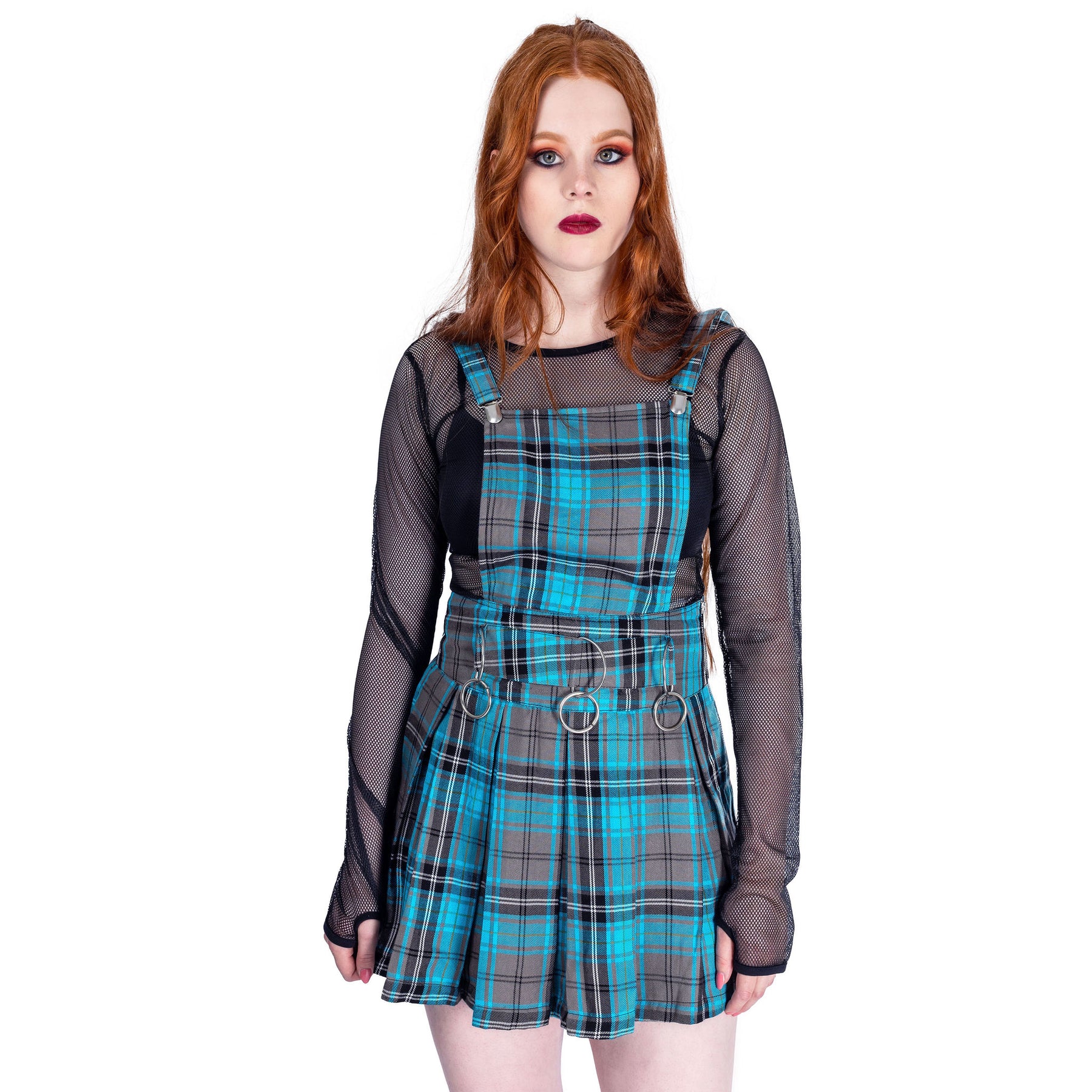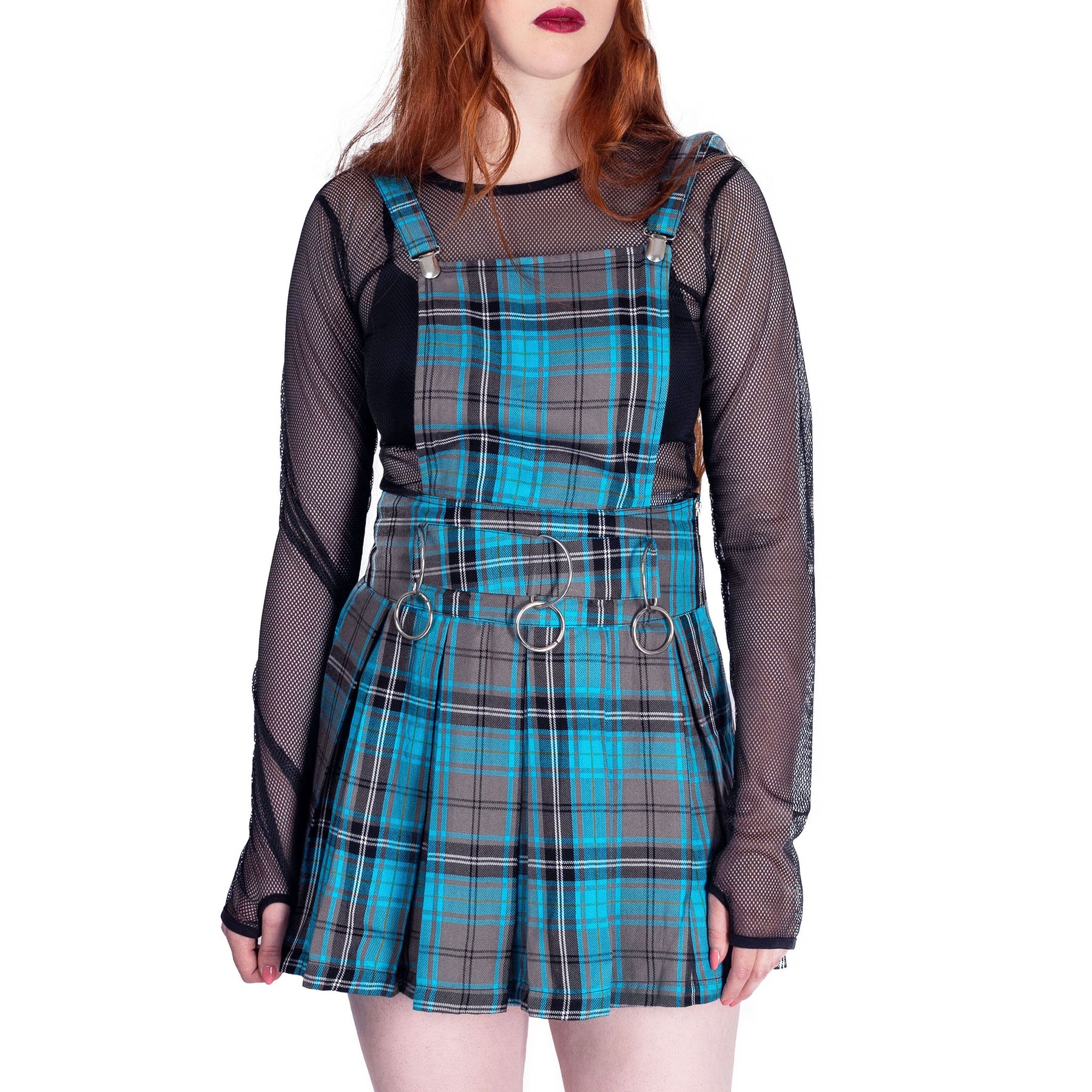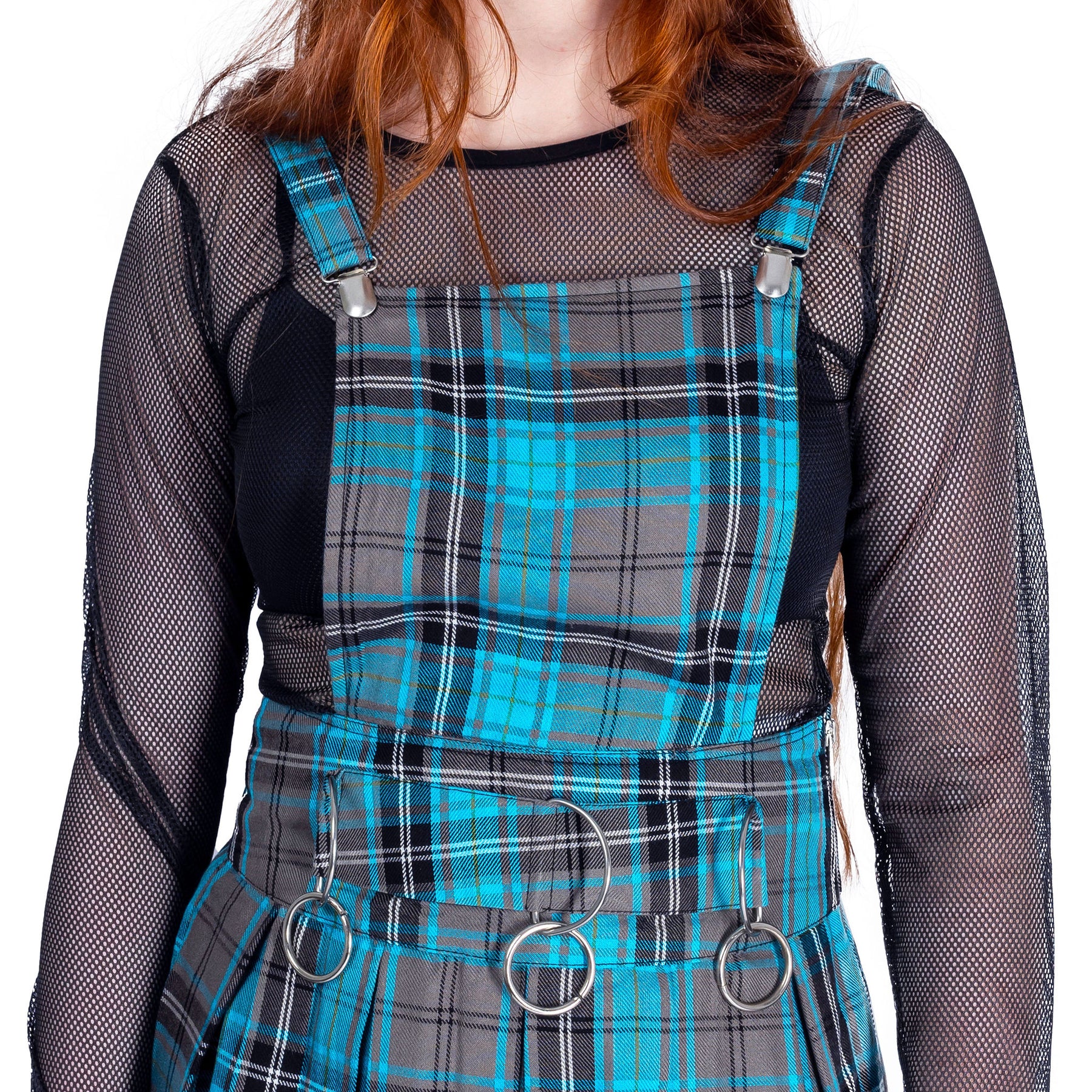 Expertly crafted with adjustable straps for a perfect fit, the Heartless Faye Pinafore Dress in Turquoise Check exudes effortless style. Its fitted waistband, adorned with O-Ring details, creates a flattering silhouette while the pleated skirt adds a touch of playfulness. A must-have addition to any wardrobe.