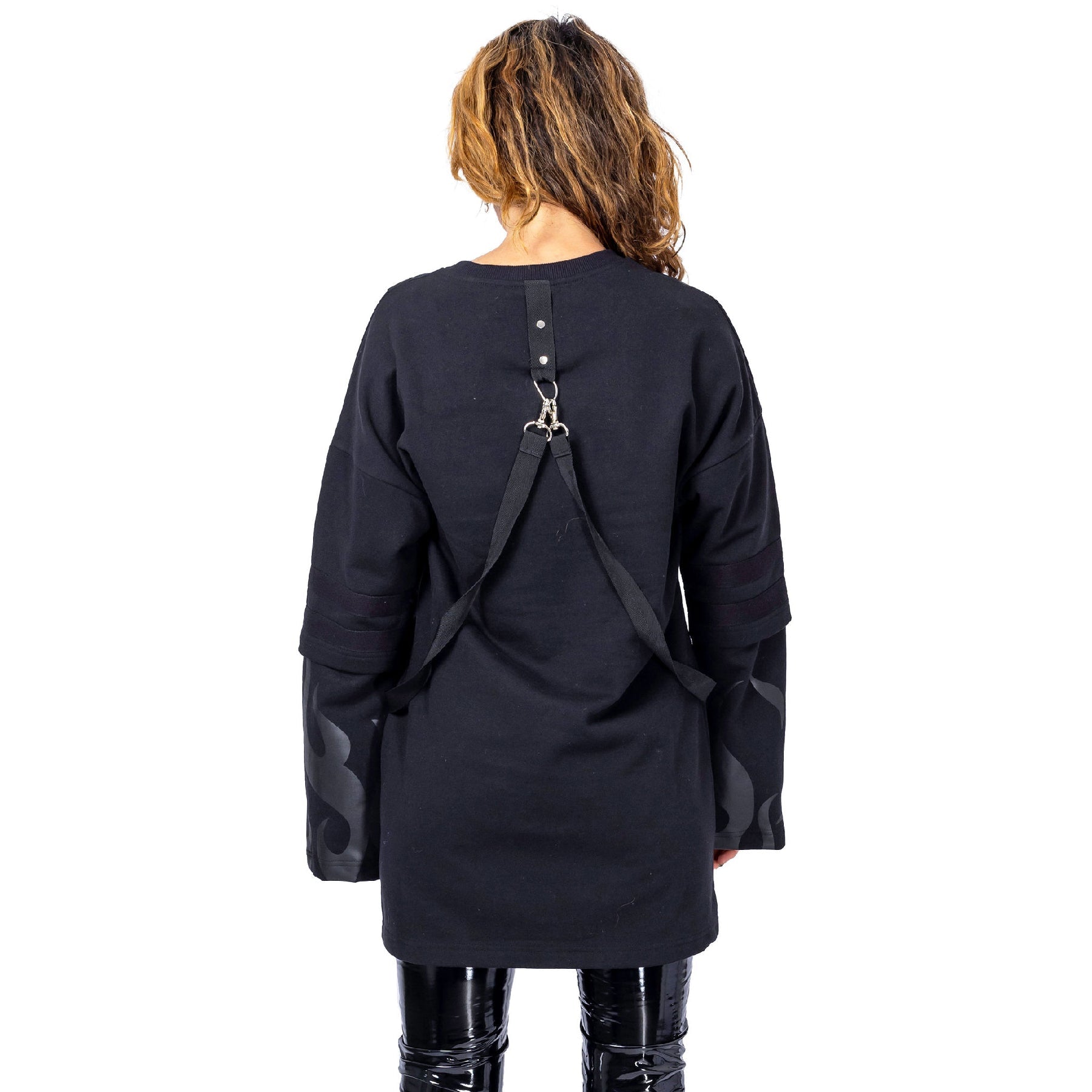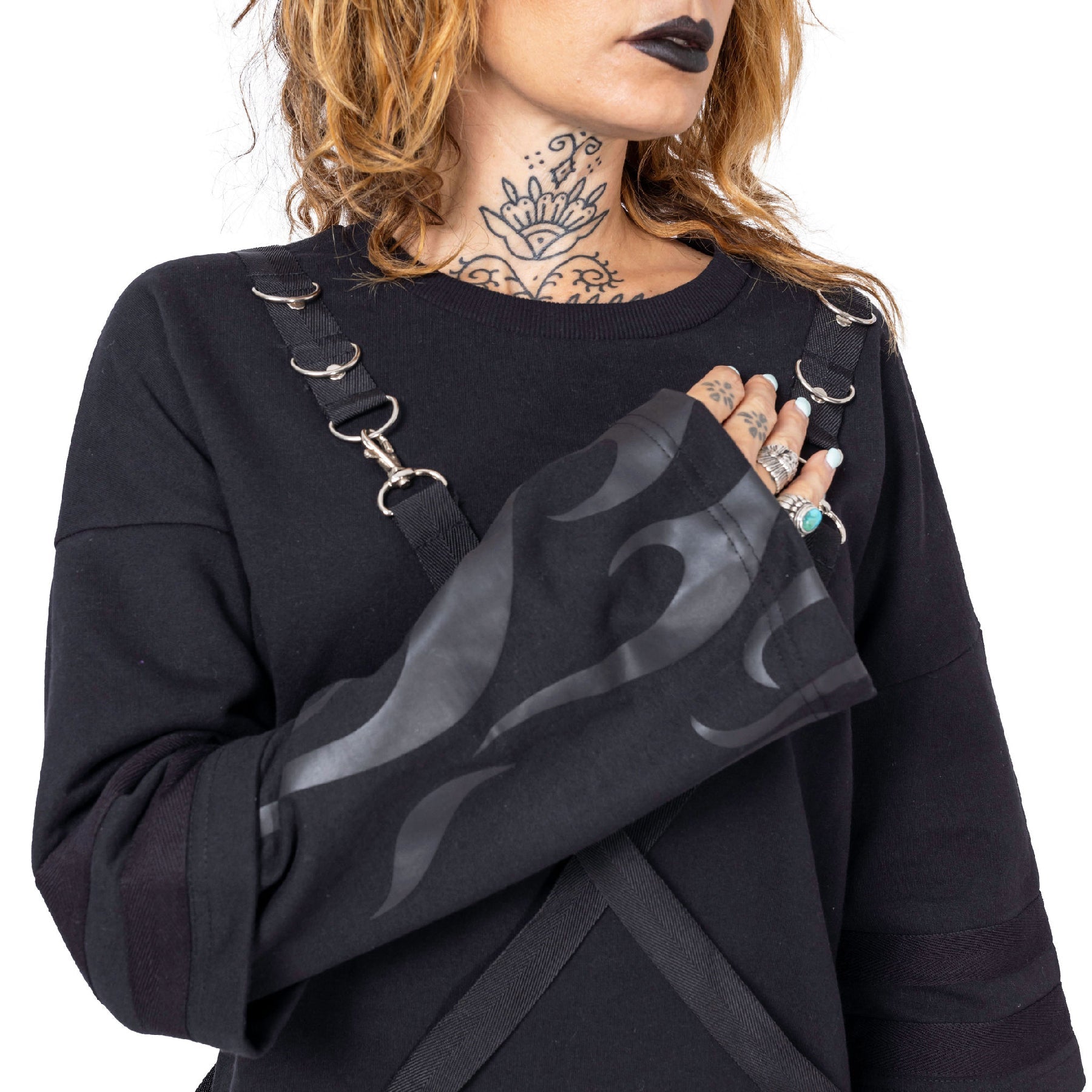 Stay cozy with attitude in our Heartless Flamethrower Top. This relaxed fit jumper features distinctive double sleeves with an edgy black-on-black flame print that catches the eye without trying too hard. Perfect for layering or making a subtle statement, this versatile piece effortlessly elevates your everyday wardrobe while maintaining maximum comfort.