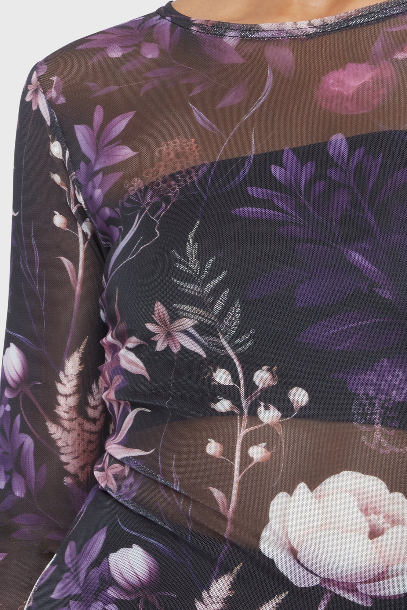 WRENWELL- Custom floral printed, soft, stretch mesh.- Long sleeves.- Fitted design.- Perfect for layering.- Designed in Brighton, England.Model is 5'8...