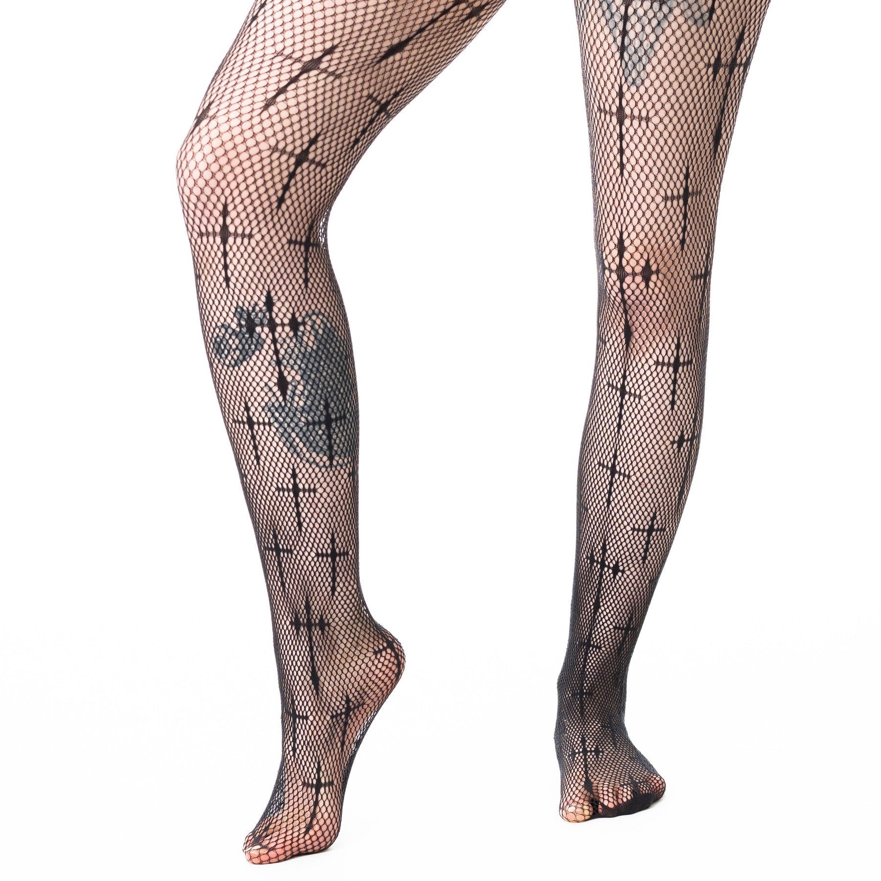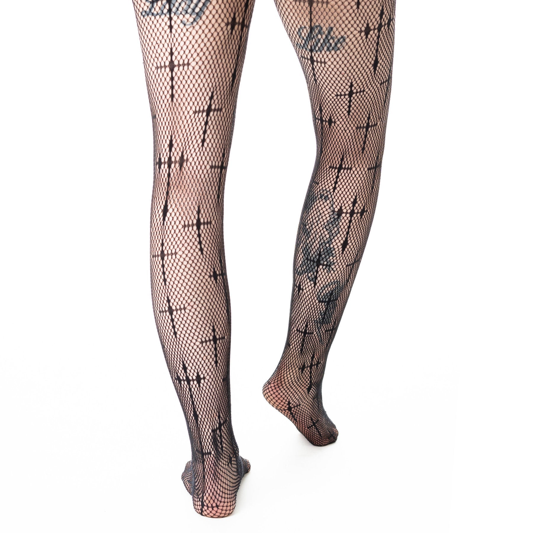 Step up your style with the Poizen Industries Coven Cross Fishnet Tights. Crafted from 95% nylon and 5% elastane, these...