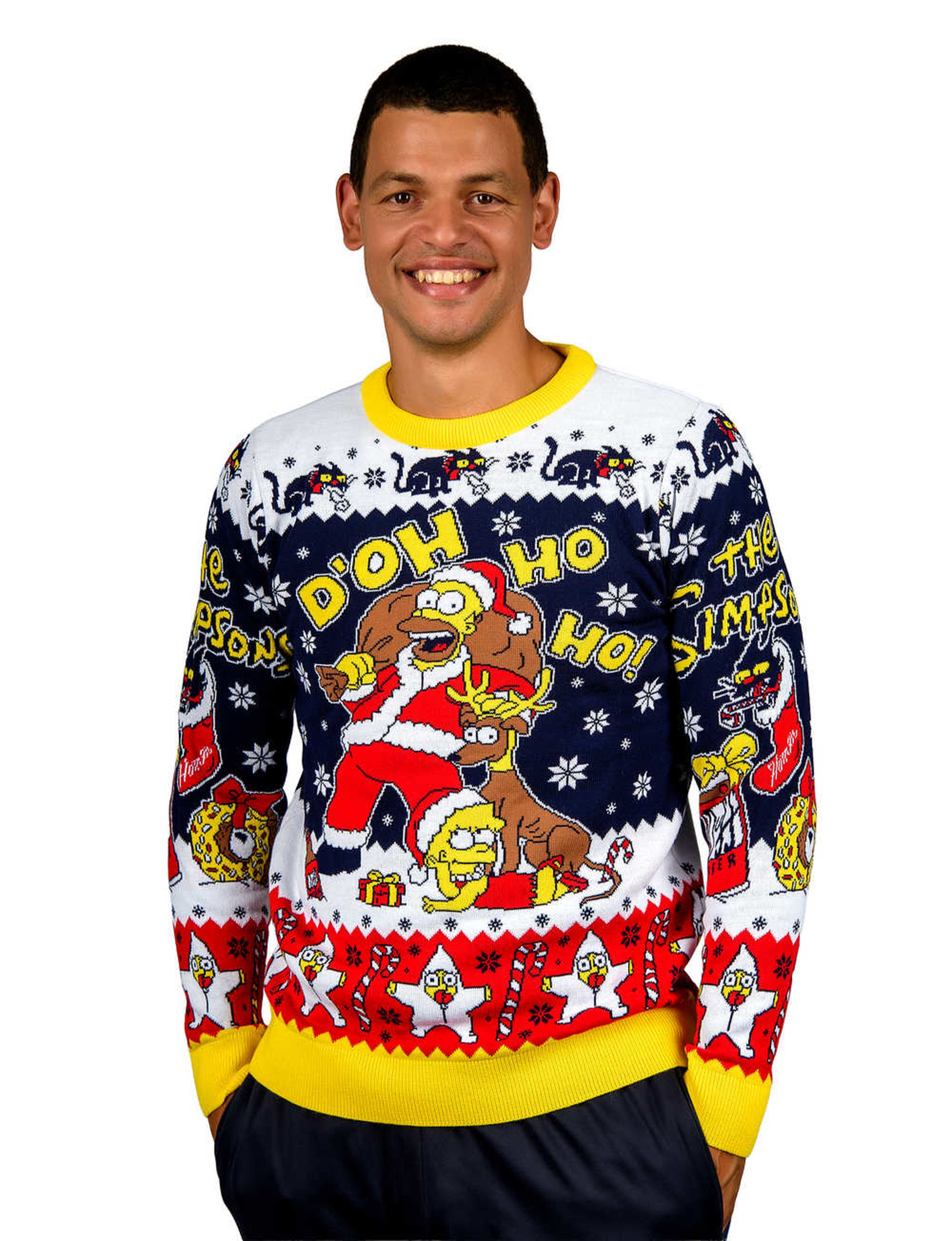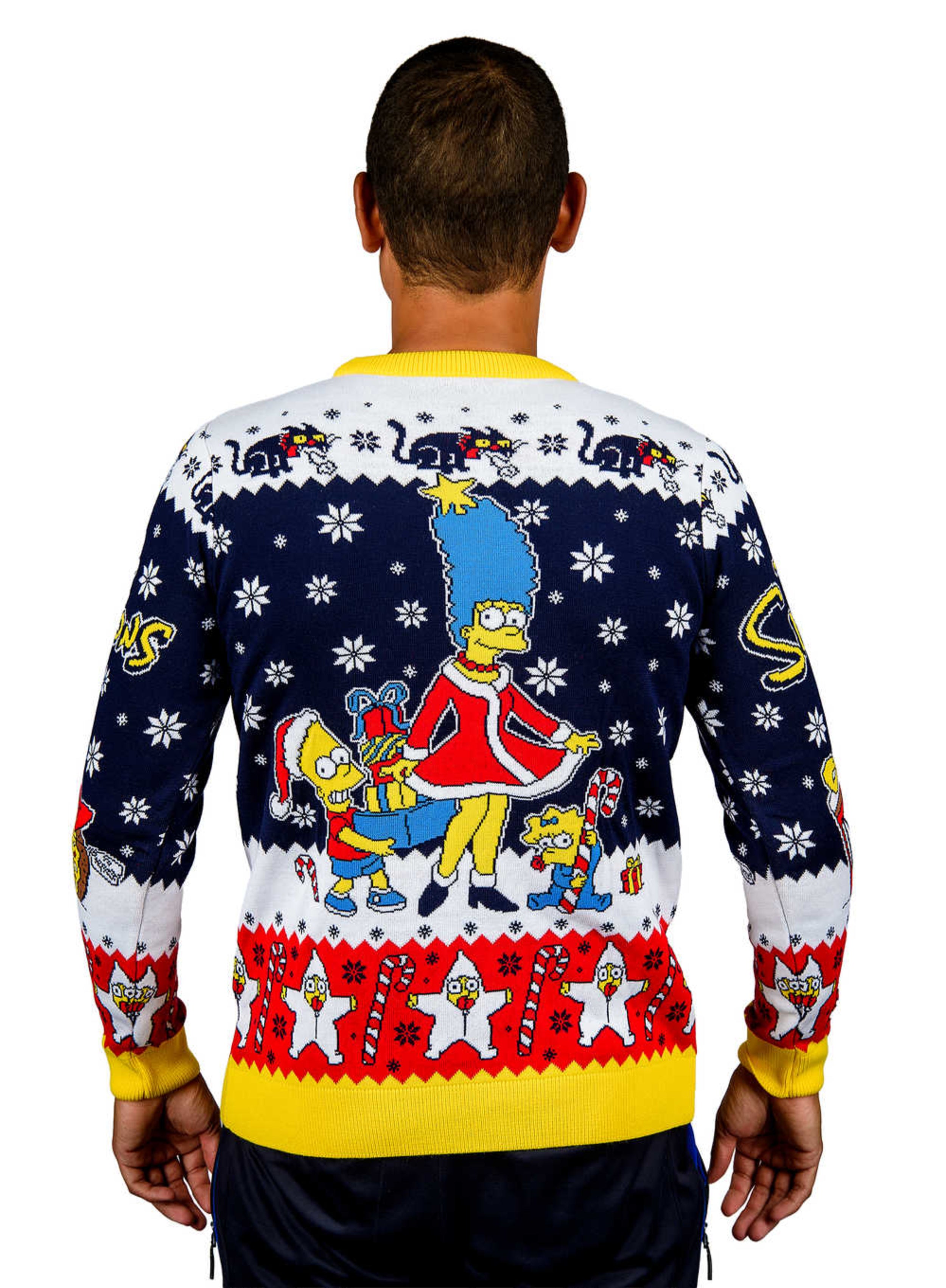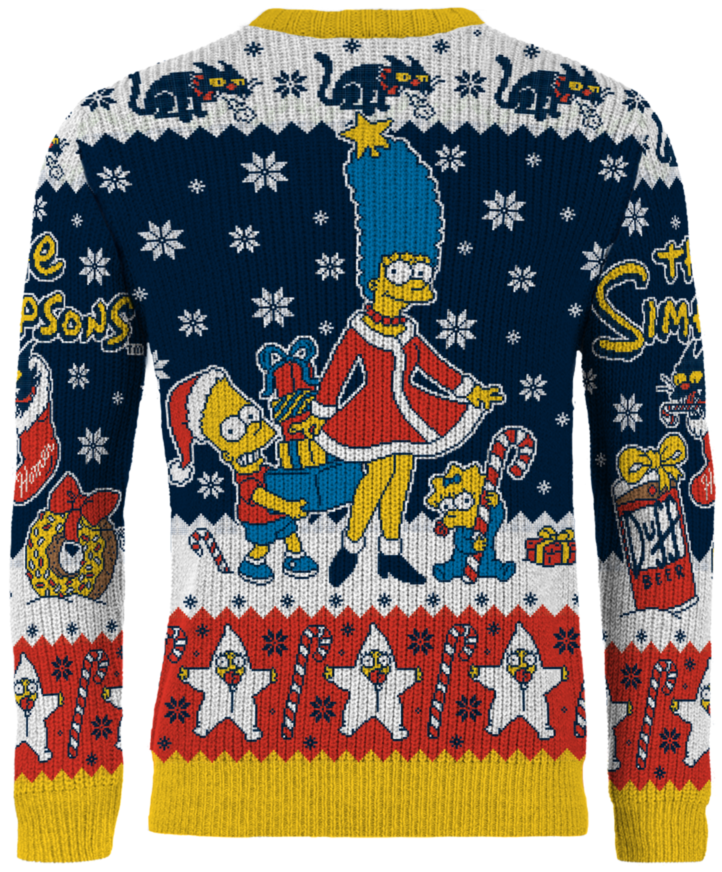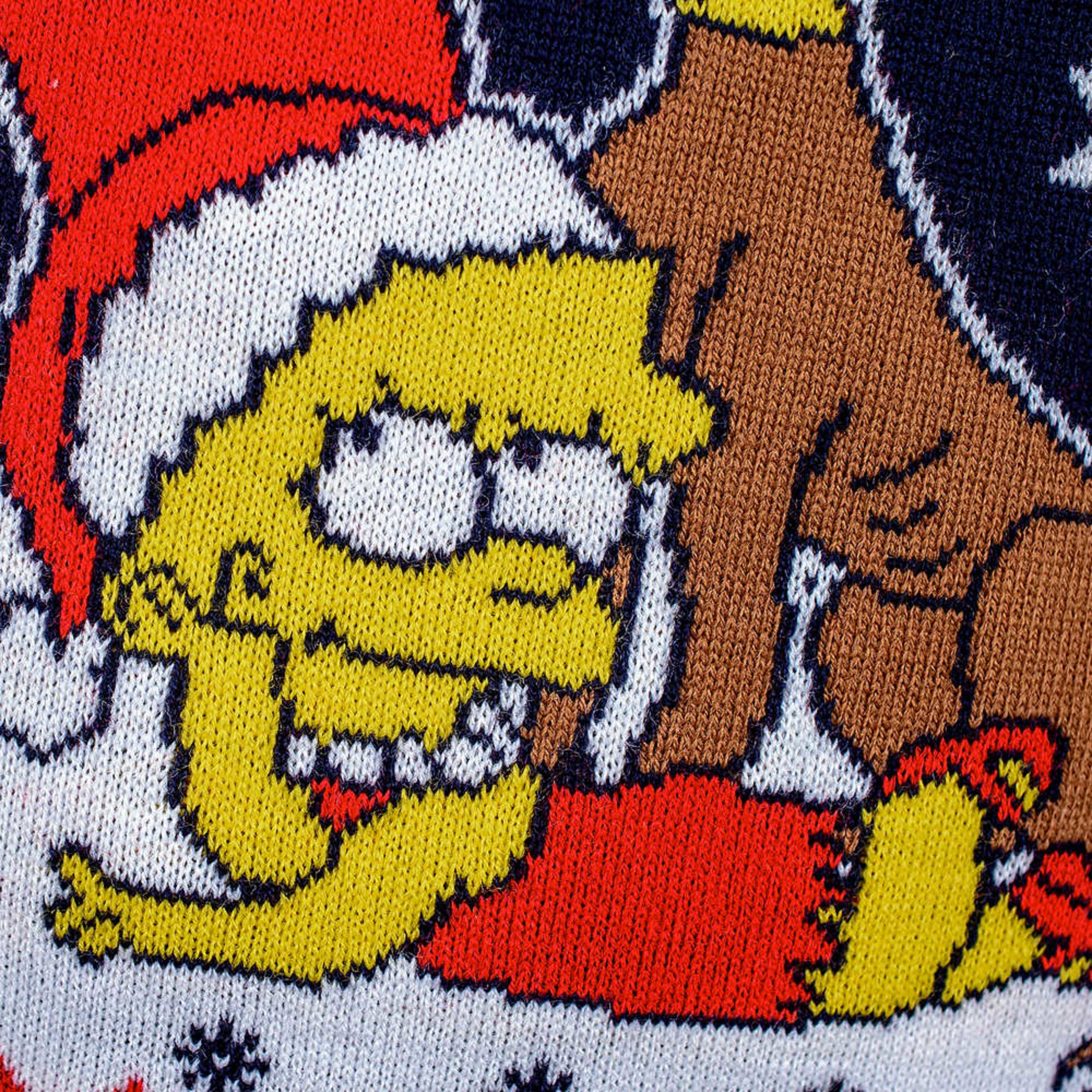 Celebrate Christmas with Springfield’s most famous family in this officially licensed The Simpsons Christmas sweater. Featuring a fully knitted design with Homer dressed as Santa, Bart, Marge, Maggie and classic Springfield details, this jumper brings festive humour to any holiday wardrobe. Made from 100% acrylic for comfort and durability.